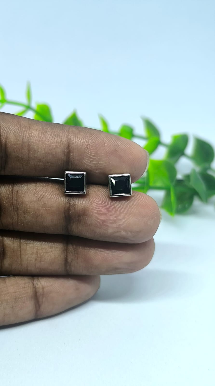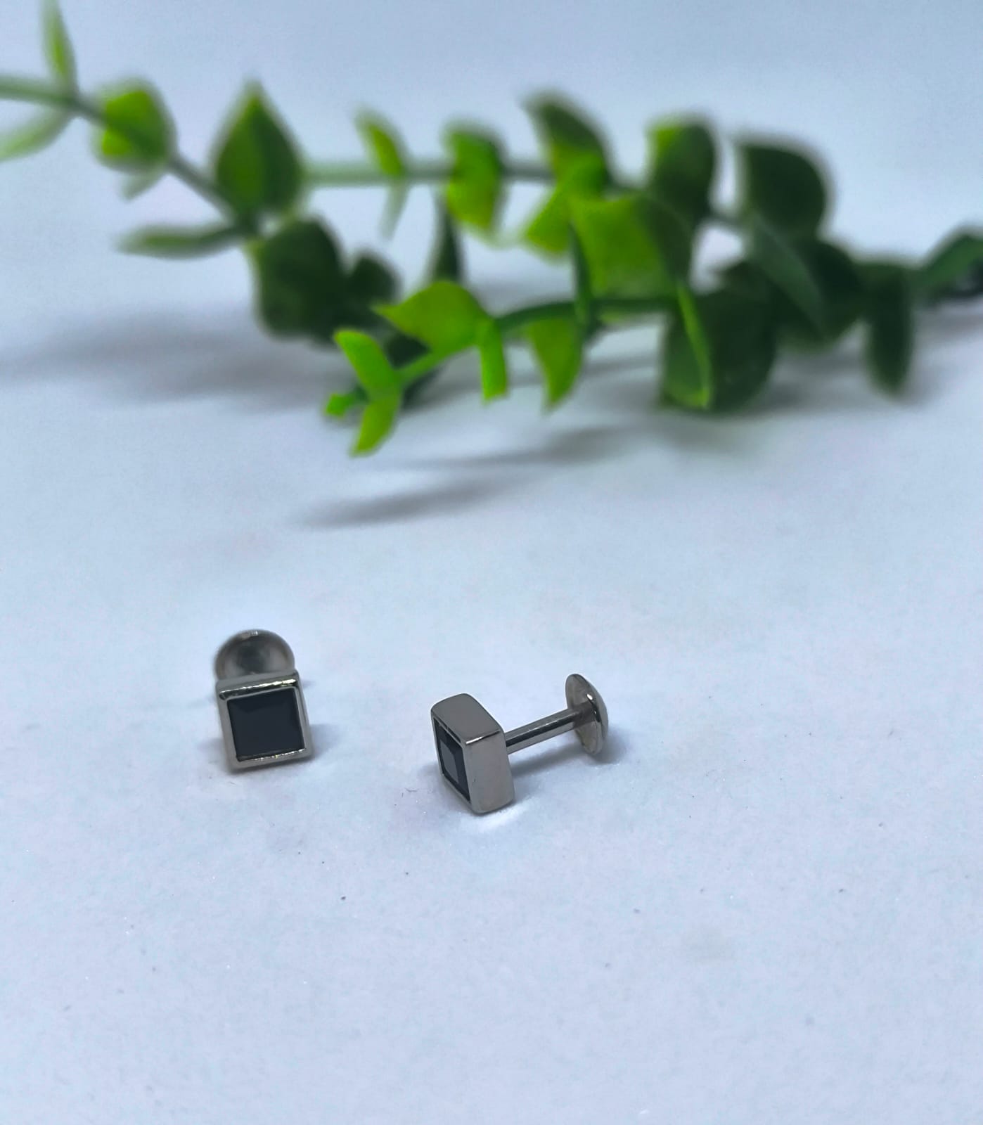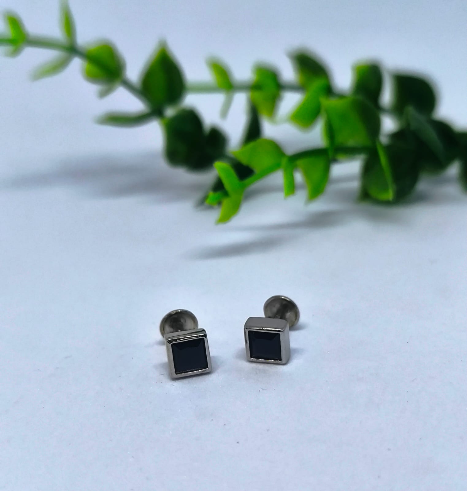 Sleek square studs with a bold black centerpiece and silver finish, perfect for a sharp and modern everyday style.