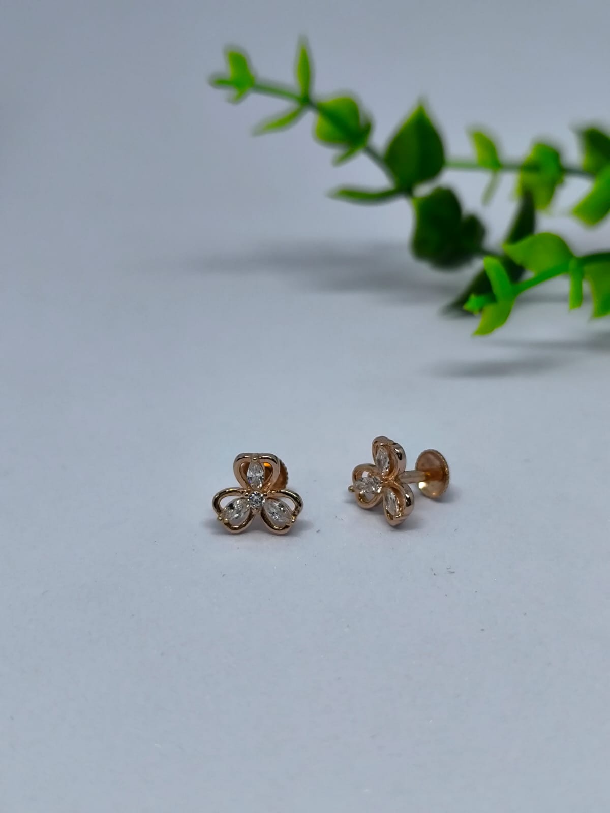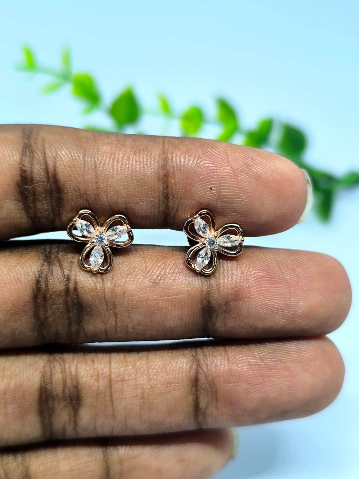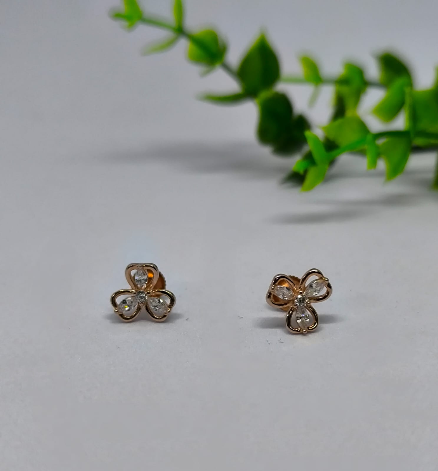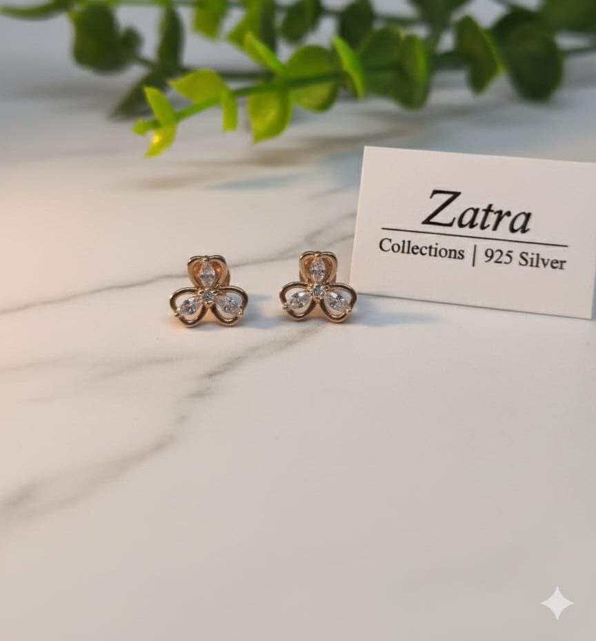 Petite three-petal gold-tone studs with clear accents, offering subtle sophistication for casual, daily, or festive wear.