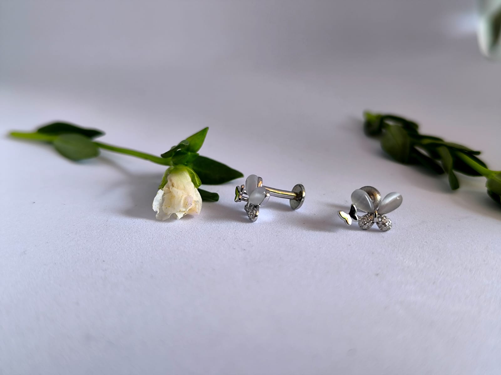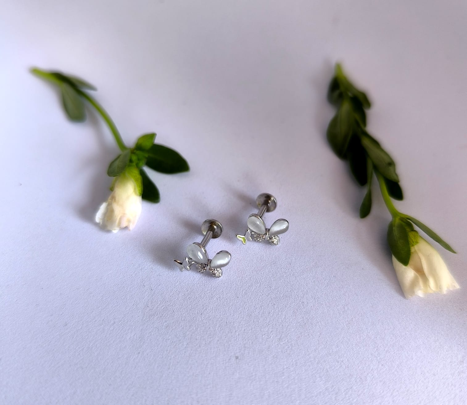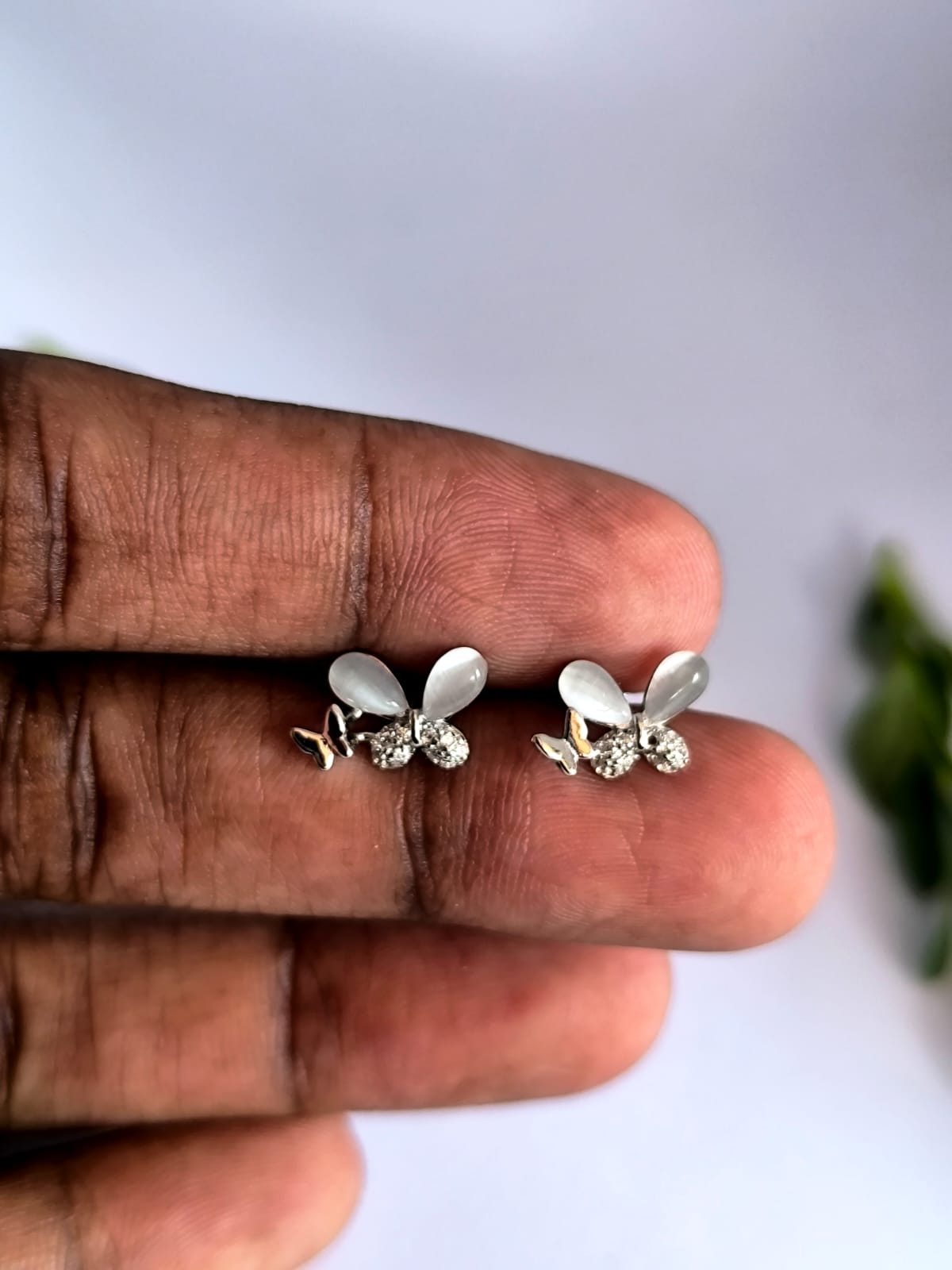 Whimsical butterfly‑inspired studs pair frosted, petal‑like marquise stones with dainty pavé wings in cool 925 silver for a soft, luminous sparkle that suits everyday wear. Secured with comfortable screw‑backs for a snug, all‑day fit, this charming pair brings a playful yet elegant touch and makes a gifting‑ready favorite.