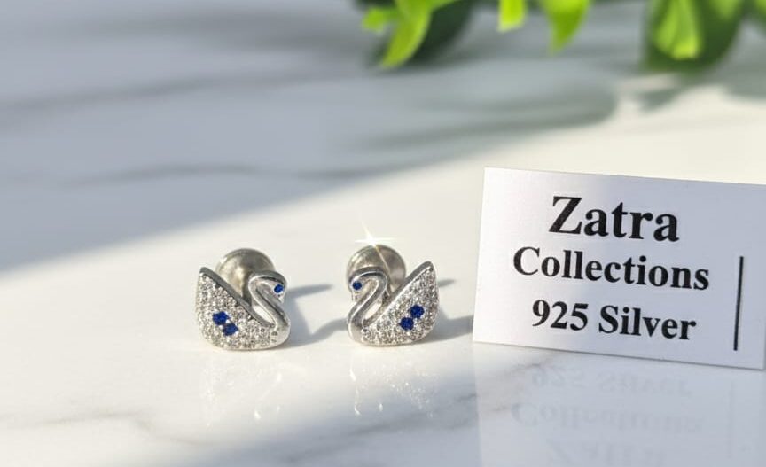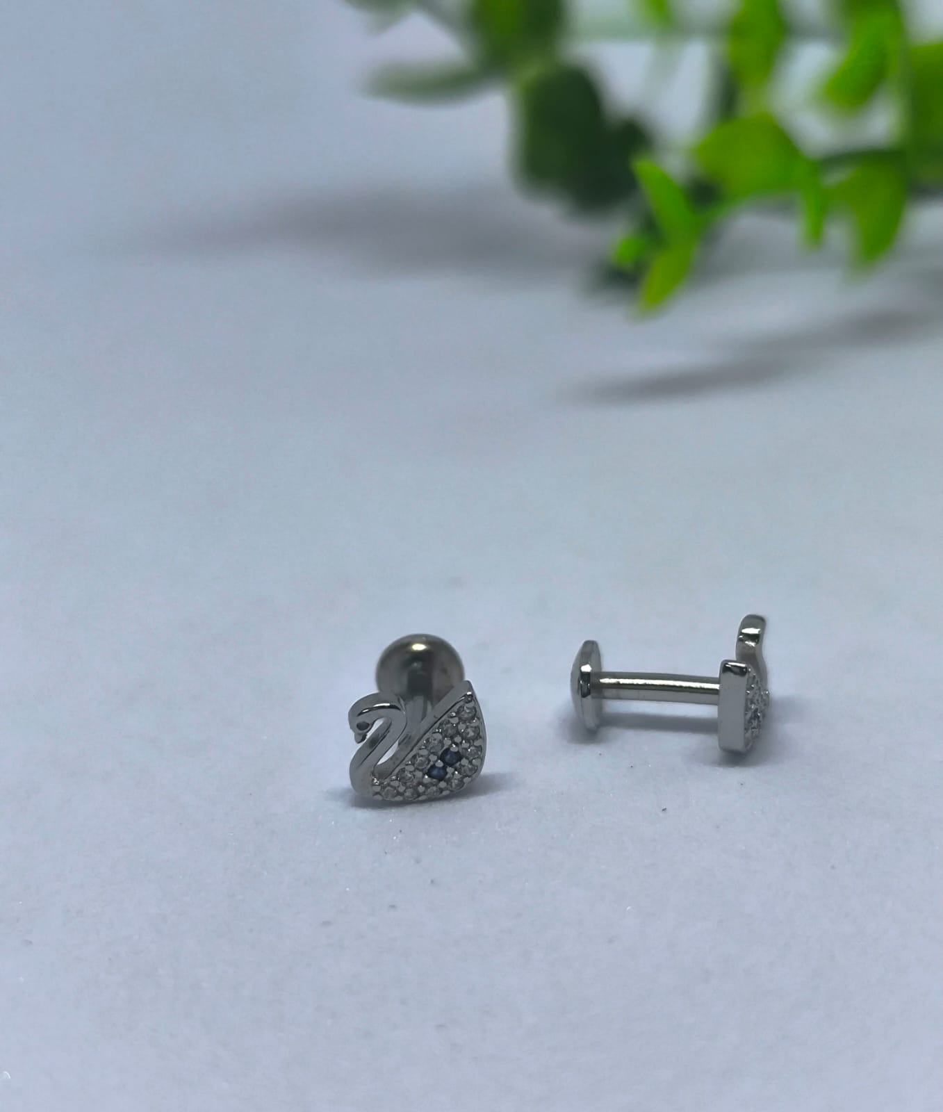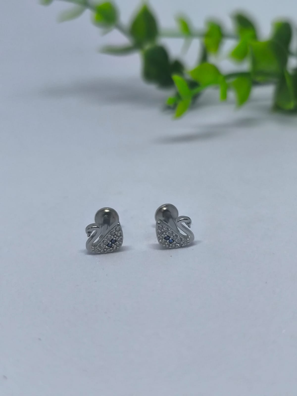 Elegant swan-shaped silver-tone studs with sparkling accents, perfect for adding charm and a unique touch to outfits