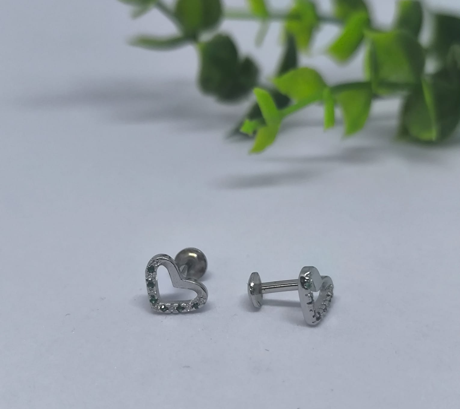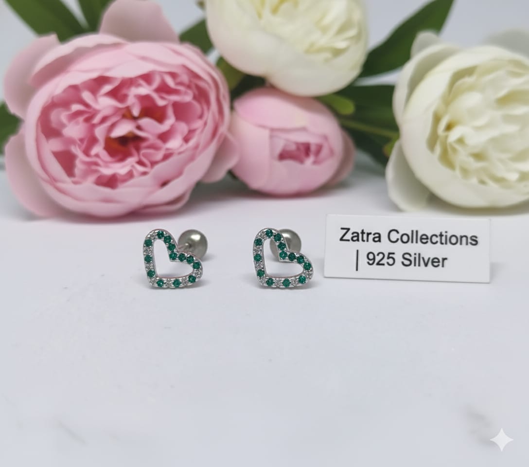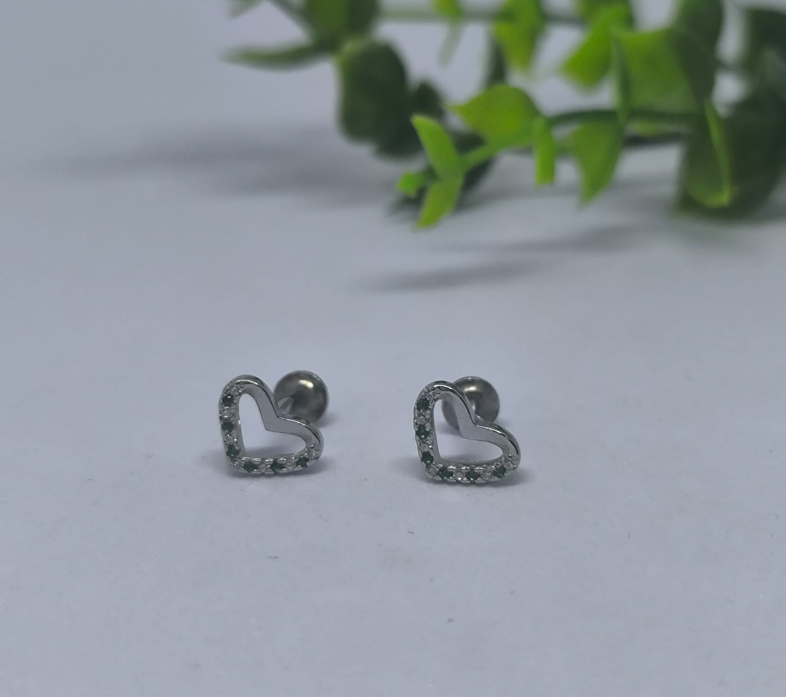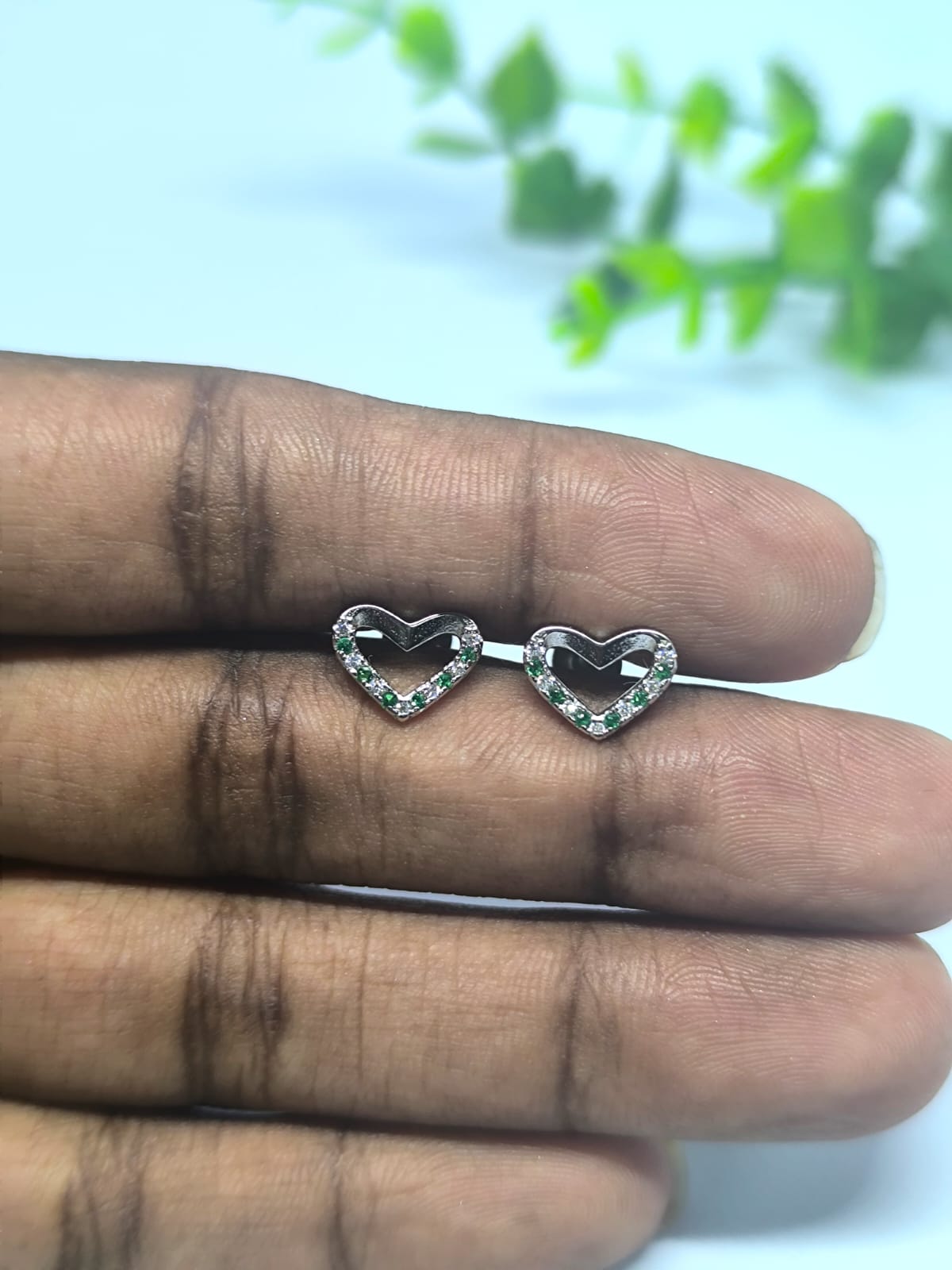 Petite silver-tone heart studs with sparkling detail, adding modern romance and playful elegance to your look.