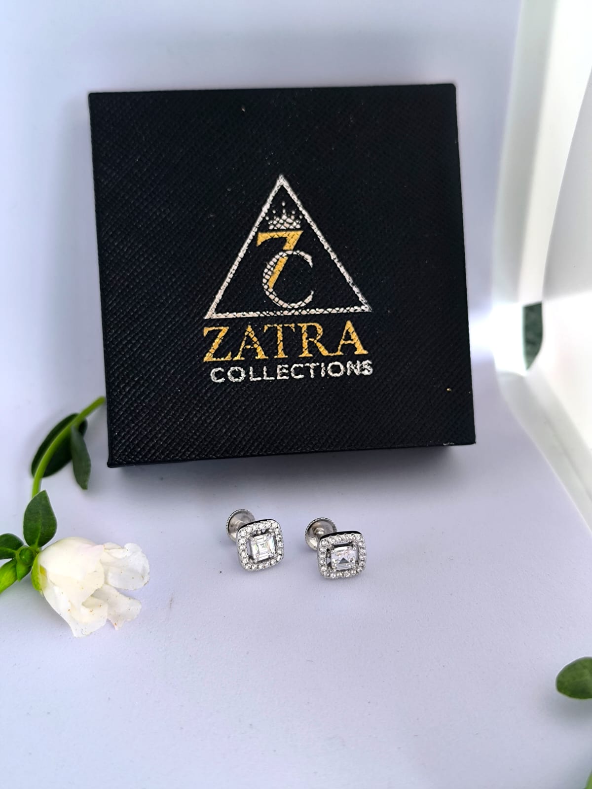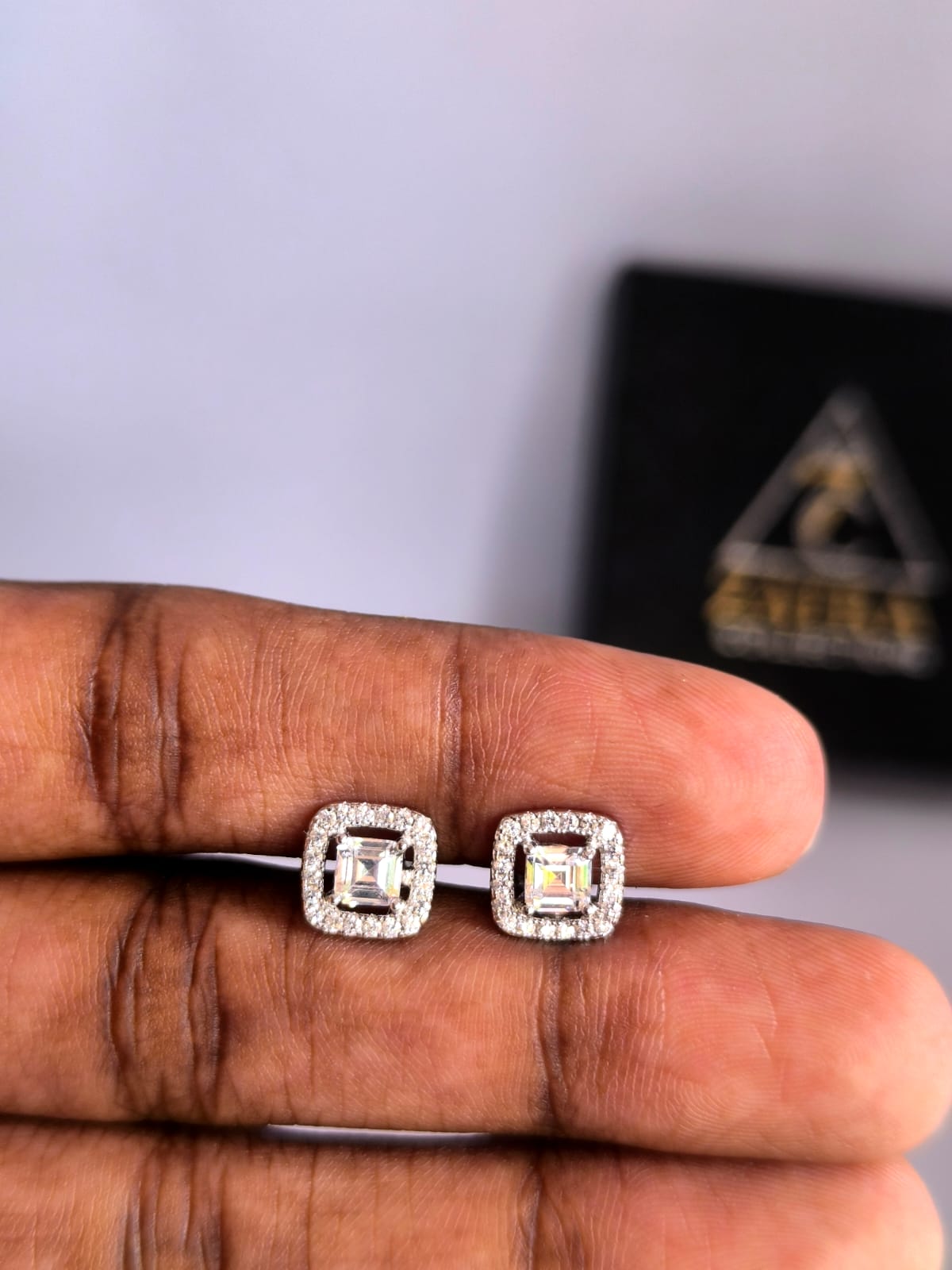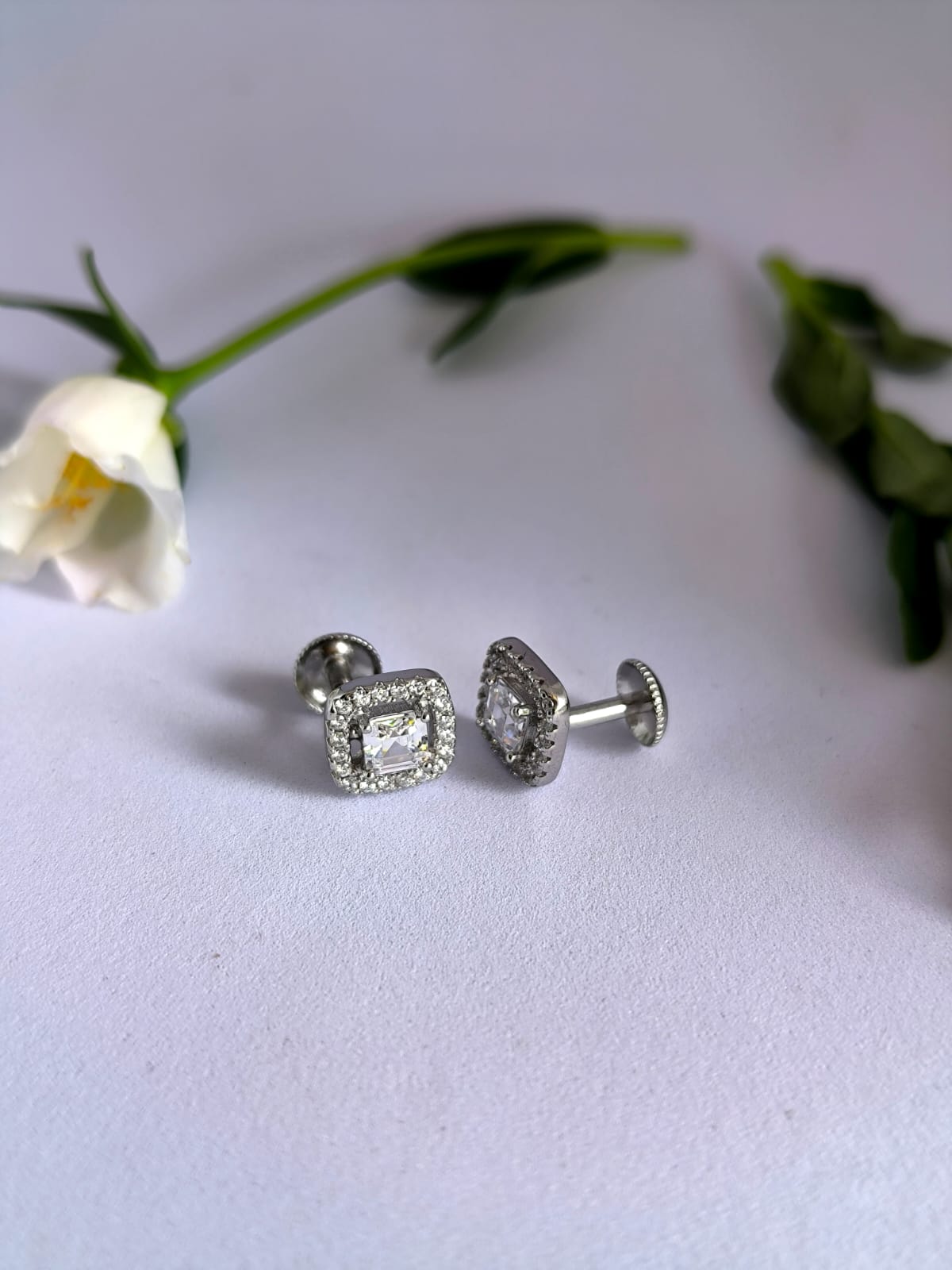 Designed in 925 silver, these classic studs highlight a brilliant cushion‑cut centerpiece framed by a pavé halo for maximum sparkle that transitions effortlessly from daytime polish to evening shine. Secured with comfortable screw‑backs for a snug, all‑day fit, this timeless pair makes an elegant staple and a refined gifting choice.
