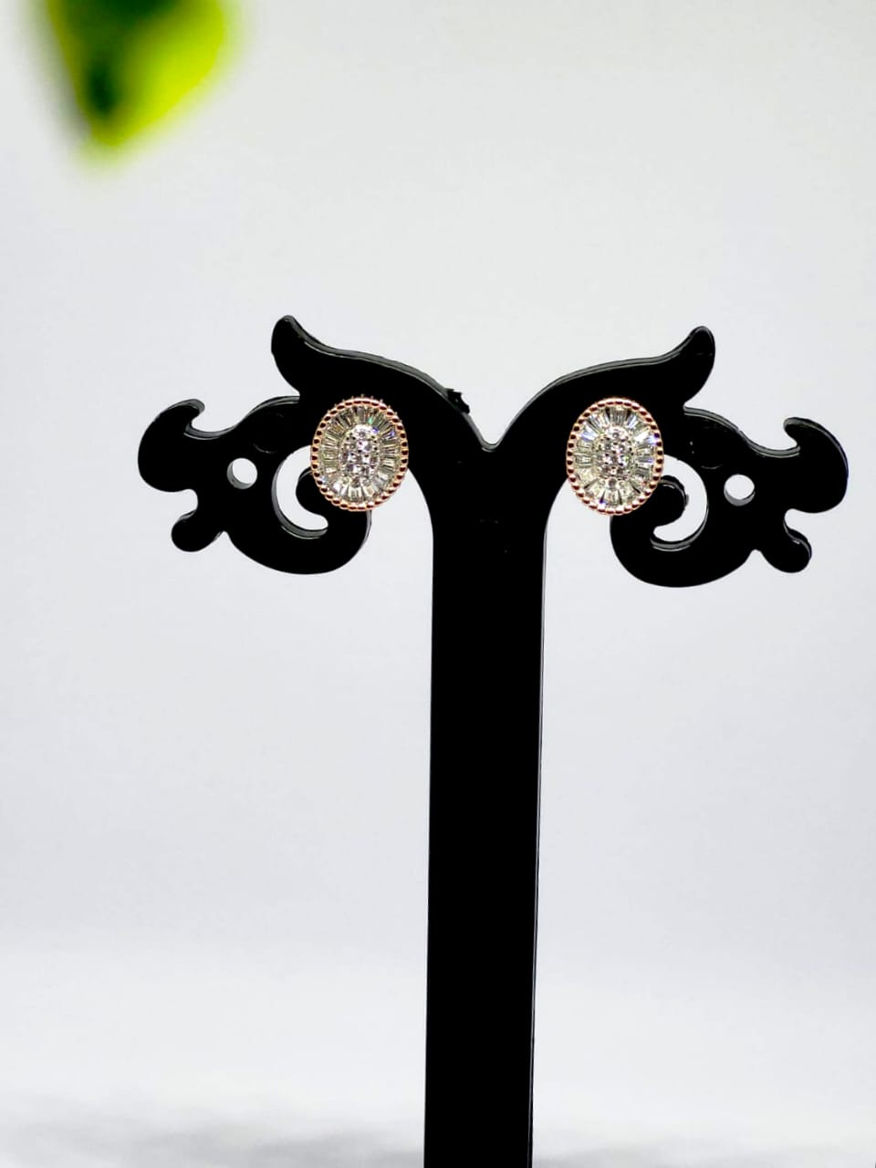 A regal blend of rose gold and silver, these 925 silver earrings feature a South screw back for secure wear and timeless sophistication. Designed to dazzle with every detail.