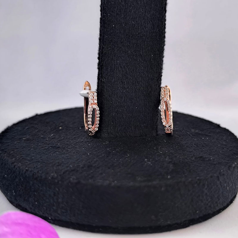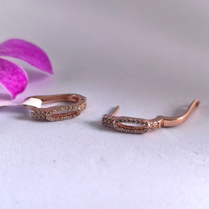 Zatra 925 silver rose gold–plated loop earrings with sparkling CZ stones. Stylish, lightweight, and versatile, perfect for daily elegance or special occasions.